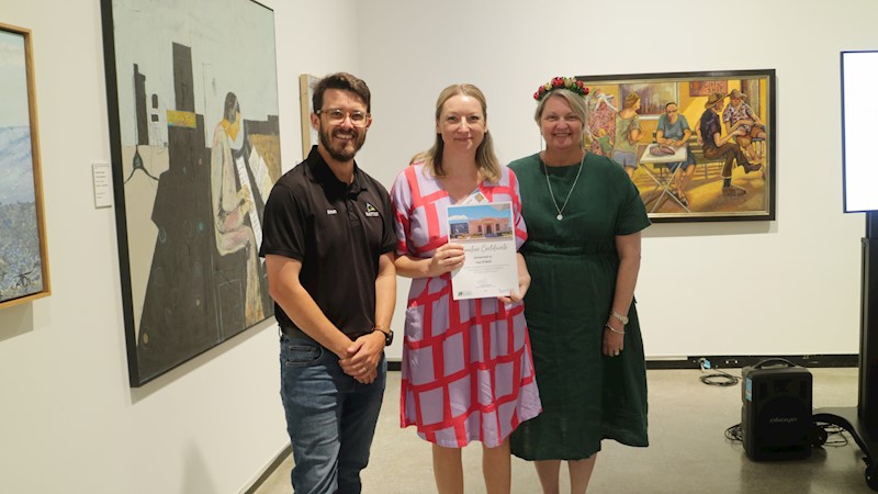 We began the evening with a local bus tour by Darryl Branthwaite from Gladstone Region Tours. Volunteers enjoyed a scenic trip around town, returning to GRAGM afterwards where we viewed the wonderful photos captured along the way. We then moved into the O’Connell Gallery—right in the centre of the art awards—for a traditional Australian Christmas dinner, surrounded by creativity and culture.